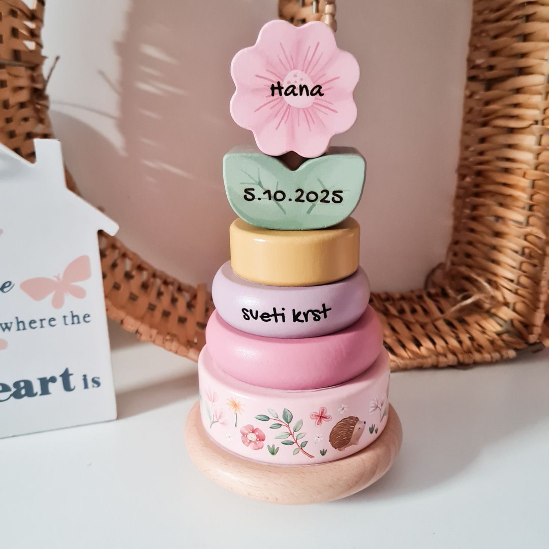 S tem čudovitim lesenim zlagalnikom Little Dutch bo vsak dan nova priložnost za igro in učenje! Malček bo z veseljem zlagal obroče enega za drugim, dokler ne postavi prikupne rožice na vrh stolpa.