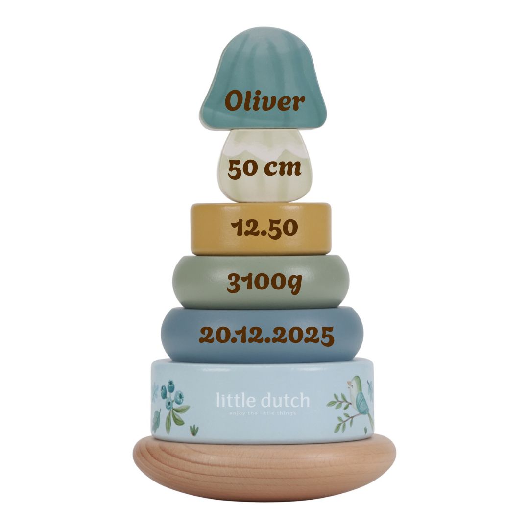 S tem čudovitim lesenim zlagalnikom Little Dutch bo vsak dan nova priložnost za igro in učenje! Malček bo z veseljem zlagal obroče enega za drugim, dokler ne postavi prikupne rožice na vrh stolpa.