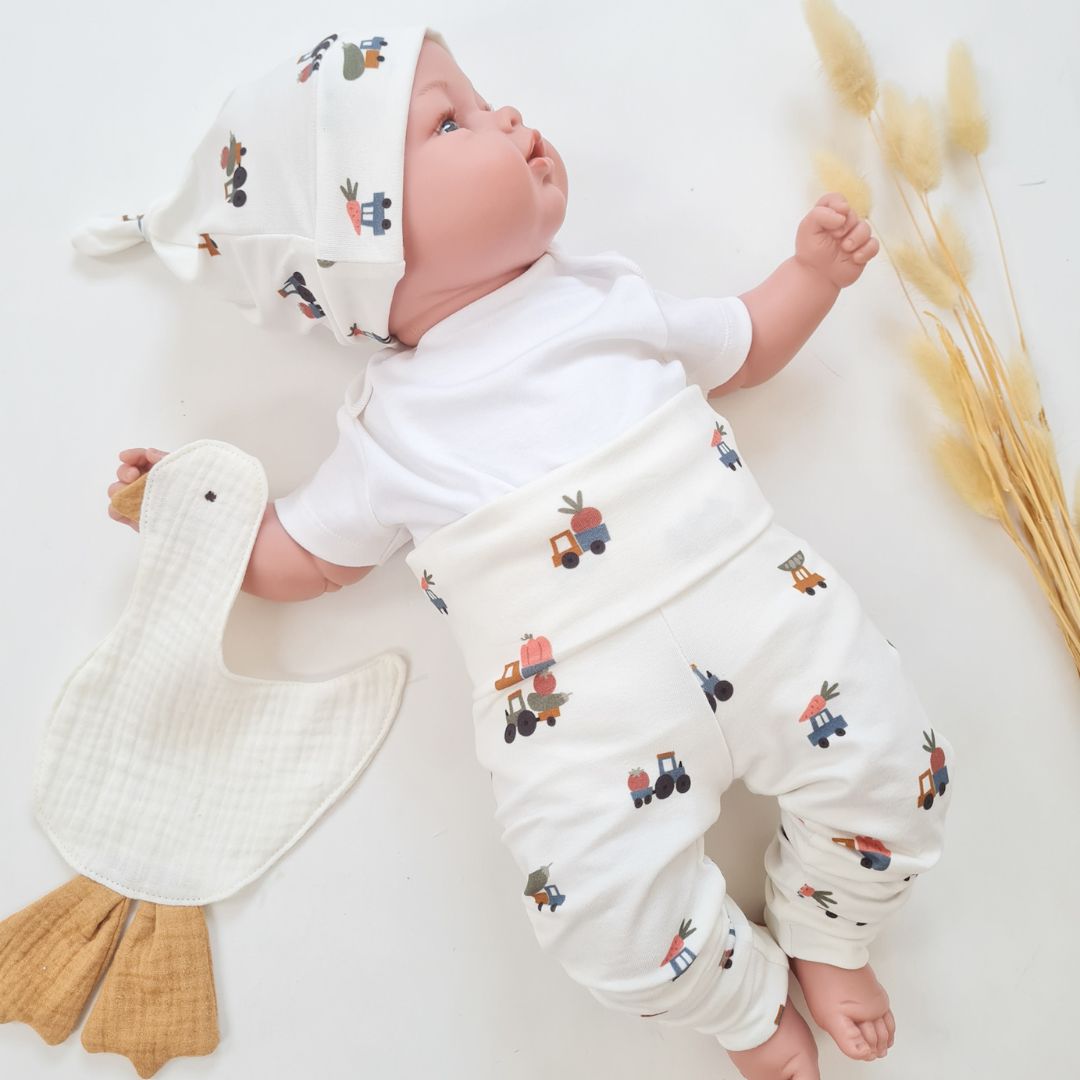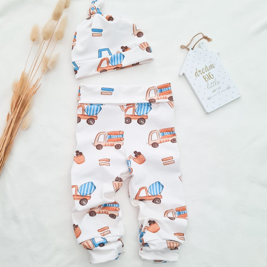 Bi tudi vaš malček nosil takšen udoben in praktičen komplet? Ta komplet vključuje mehko kapico in prilagodljive hlače, ki bodo otroka grele in hkrati rasle z njim.