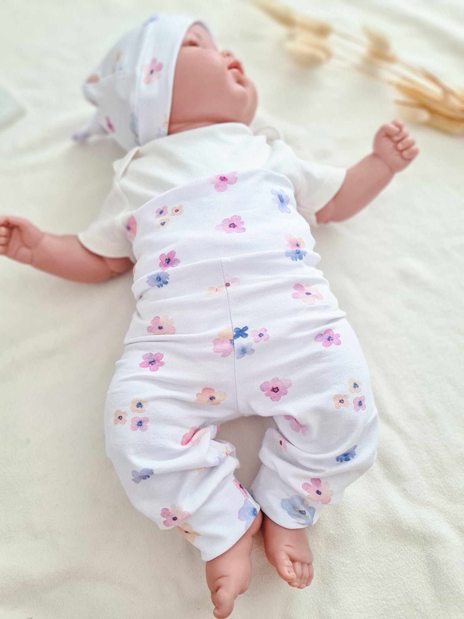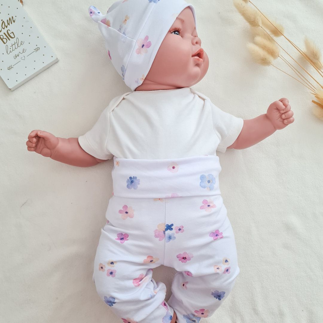 Bi tudi vaš malček nosil takšen udoben in praktičen komplet? Ta komplet vključuje mehko kapico in prilagodljive hlače, ki bodo otroka grele in hkrati rasle z njim.