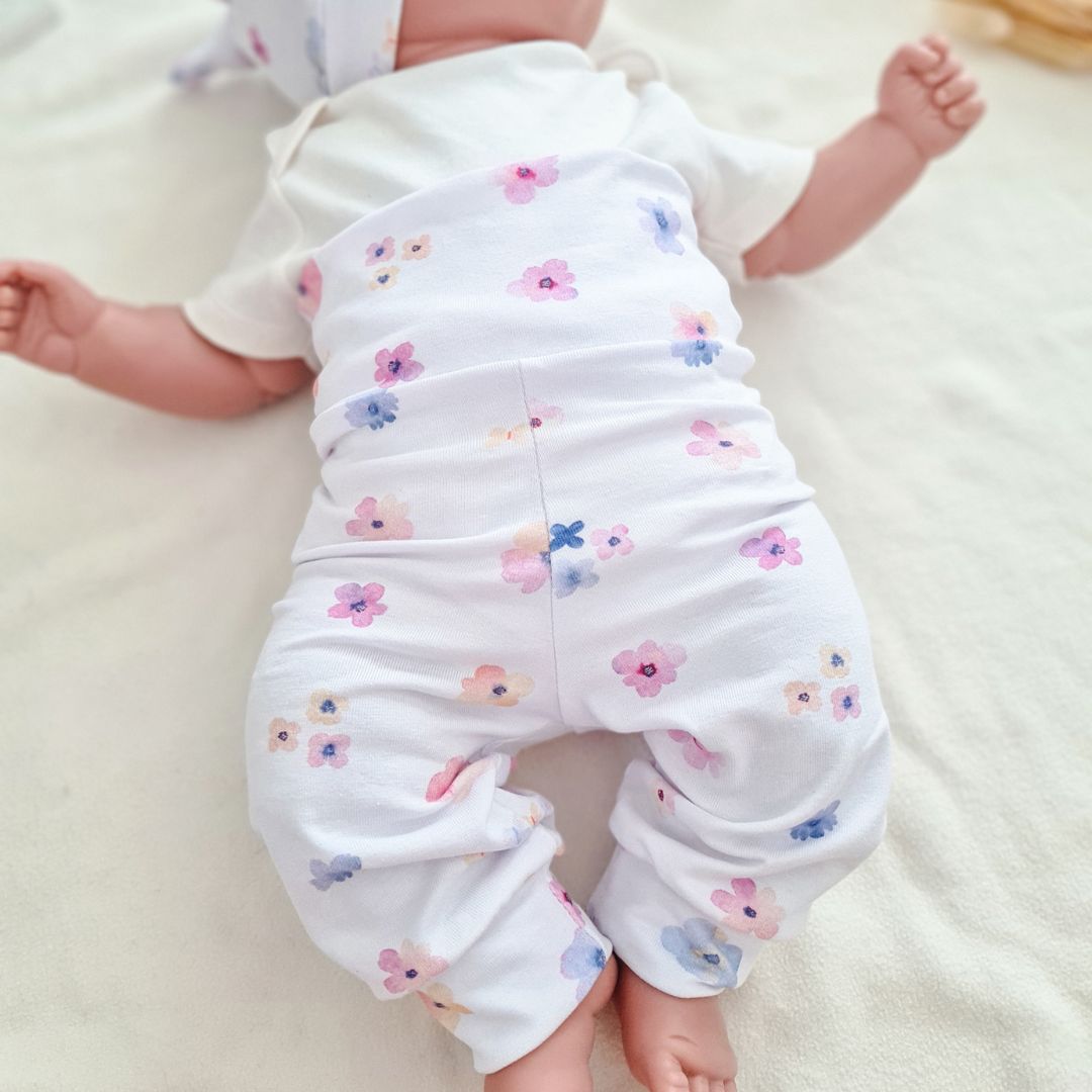 Kapica se zgoraj zaveže na ljubek vozel, hlače pa imajo širok pas, ki ga lahko zavihate ali odvihate, da lepo greje trebušček. Spodnji del hlač je zaključen s patentom, ki se ga prav tako lahko prilagodi, ko otrok zraste.