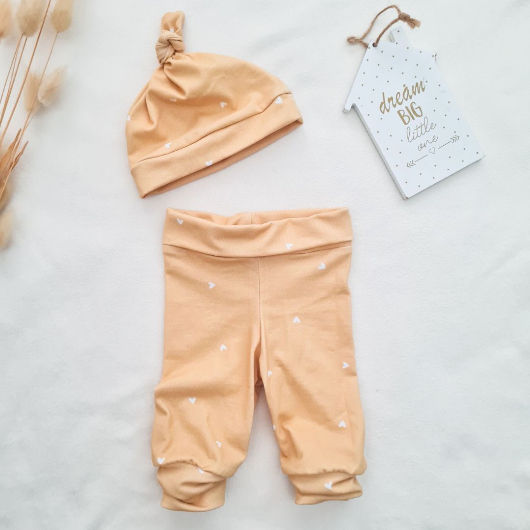 Bi tudi vaš malček nosil takšen udoben in praktičen komplet? Ta komplet vključuje mehko kapico in prilagodljive hlače, ki bodo otroka grele in hkrati rasle z njim.
